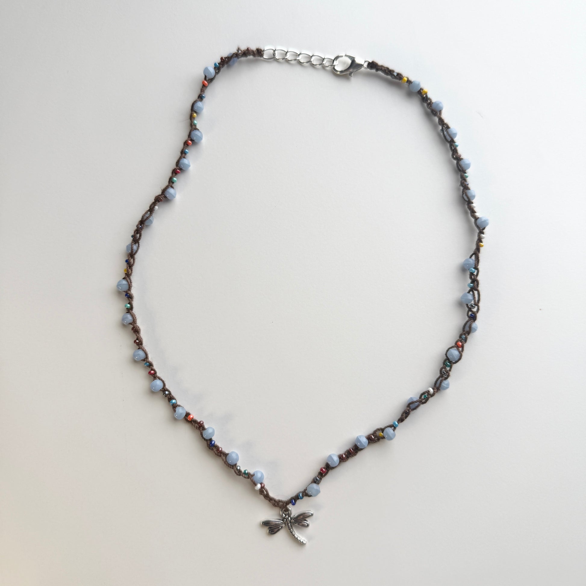 Periwinkle Dragonfly Crochet Necklace